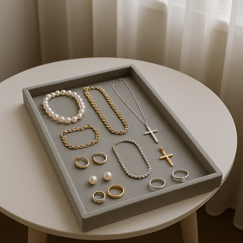 No matter the occasion, remember that jewelry should reflect your style while fitting the setting. Focus on balance—use gold and platinum pieces for elegance, pearls for a touch of classic charm, and cross motifs for a personal touch. Keep some affordable options on hand so you can mix and match without worrying about being too expensive.