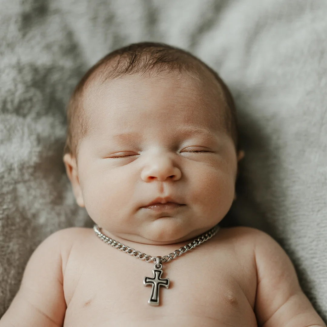 El newborn cross necklace simboliza bendición y esperanza para el futuro del bebé. Cada vez más familias optan por regalar un baby cross necklace como primera joya, convirtiéndose en un recuerdo eterno de la infancia. El newborn cross necklace suele estar fabricado en materiales hipoalergénicos y con diseños suaves, ideales para la delicada piel del recién nacido. Además, es habitual que el newborn cross necklace sea bendecido antes de ser entregado al bebé, agregando valor sentimental y espiritual al regalo.