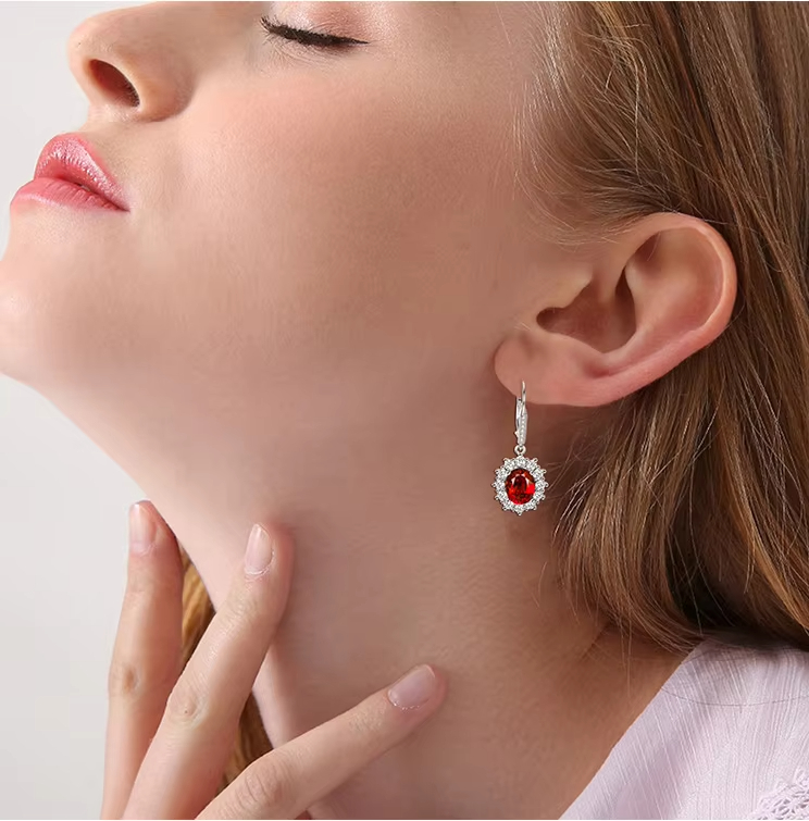 Wholesale 925 Sterling Silver Prong Setting Ruby Dangle Drop Earrings