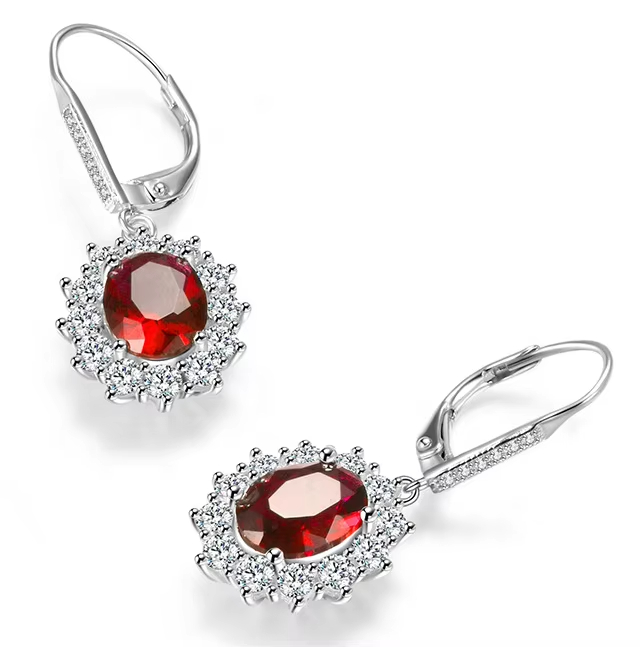• Wholesale 925 Sterling Silver Prong Setting Ruby Dangle Drop Earrings