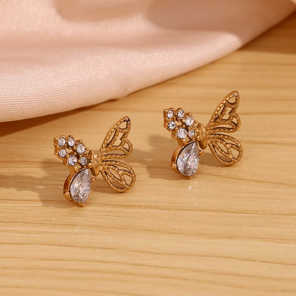 These butterfly earrings blend elegance and sport-inspired creativity through a unique tennis racket wing design and glistening zircon crystals. A stylish pick for trendsetters who want a touch of charm with a sporty twist.