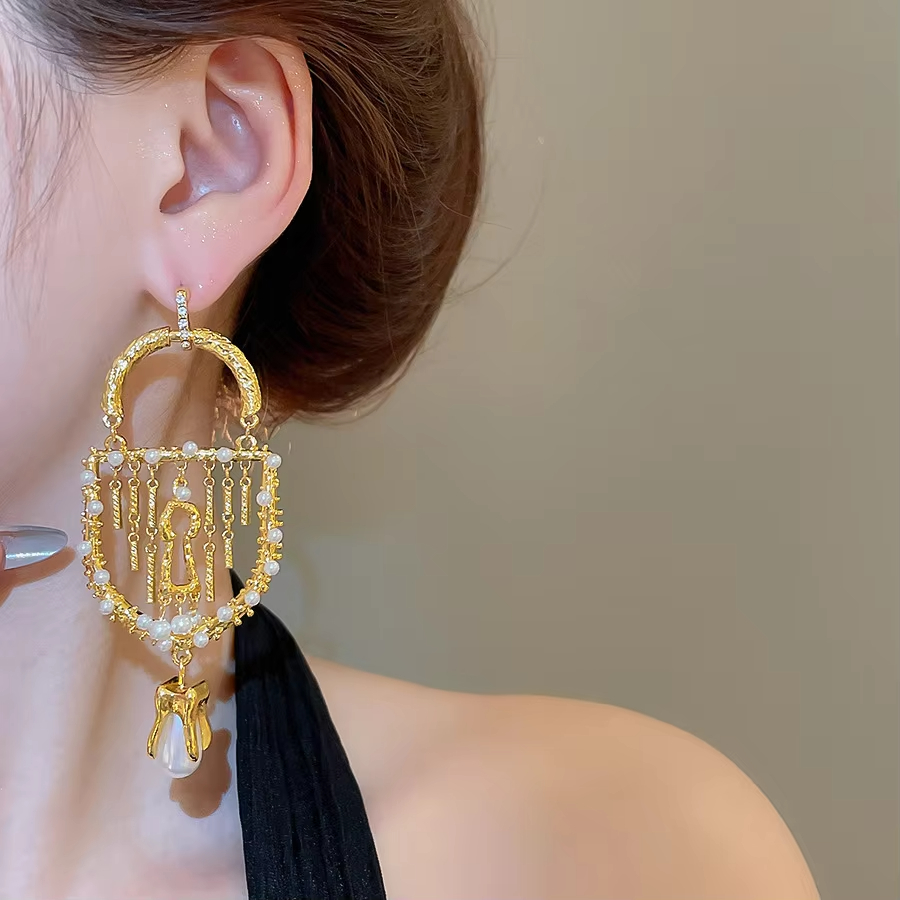 Features: Pearl Tassel, Keyhole Charm, Decorative Chains