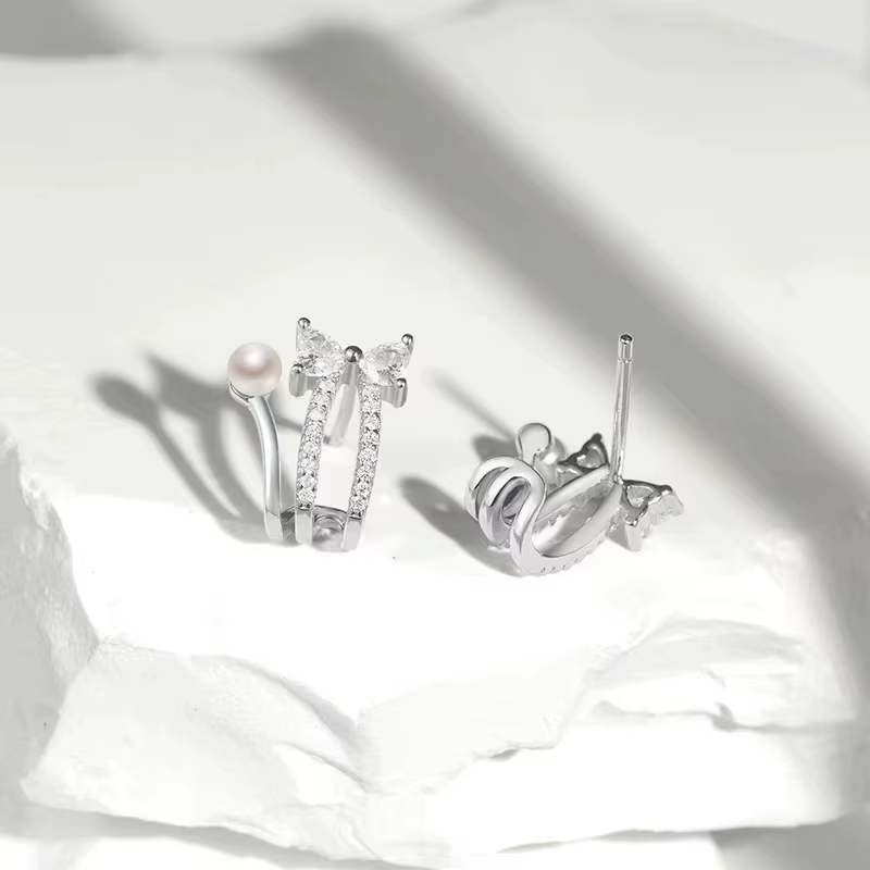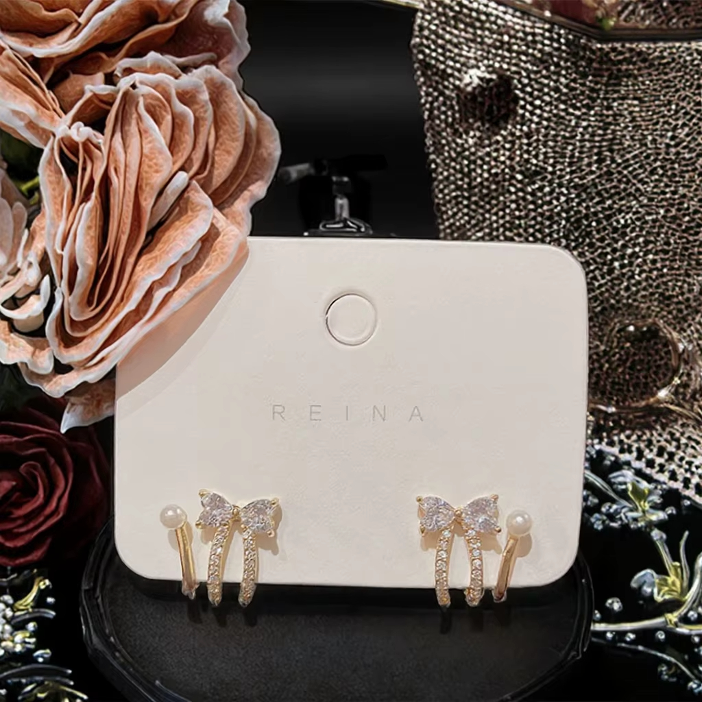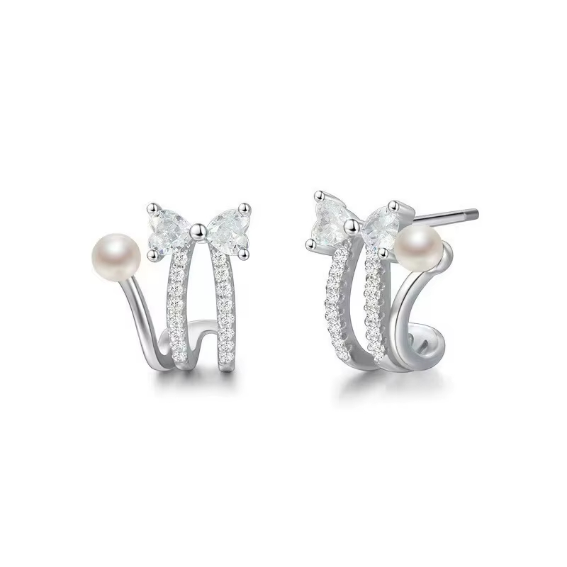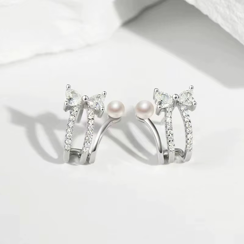 Embrace elegant retro glamour with these Luxury Micro Zircon Bow Earrings. Featuring heart-cut micro zircon stones forming a delicate bow and finished with a soft pearl accent, these earrings combine vintage charm with modern geometry. Crafted from high-quality brass and polished in platinum tone, they are both hypoallergenic and exquisite for party wear. The dual curve design hugs the ear for a cuff-style aesthetic that’s secure and stylish.